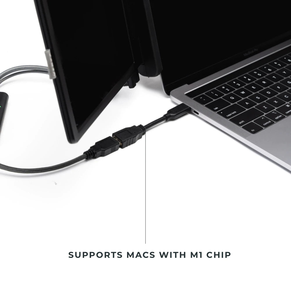 The new Xebec Tri-Screen Adapter enables you to connect ANY laptop to the Tri-Screen 2 with just a single cable per screen, including the M1 MacBook Pro and Air.